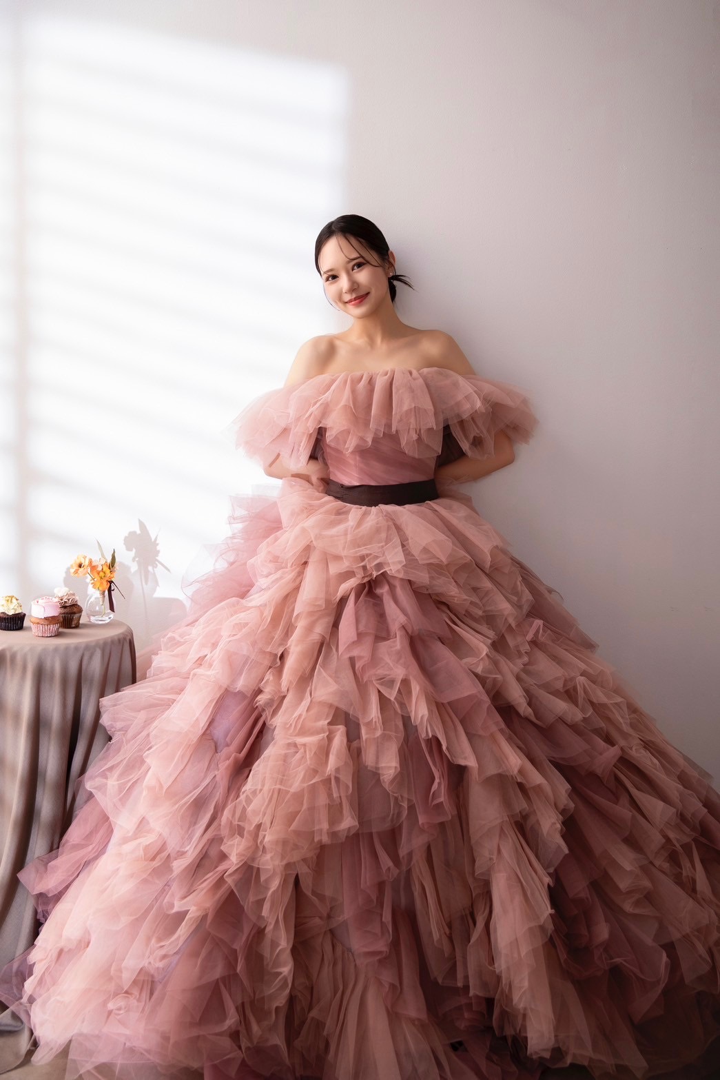 スカートのボリューム感が目を引く1着は まさに “主役級” 。