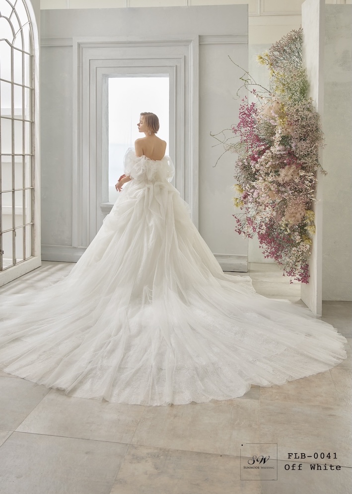 ふんわりとした胸元のデザインやボリューム感のあるドレスラインが華やかさを演出します。