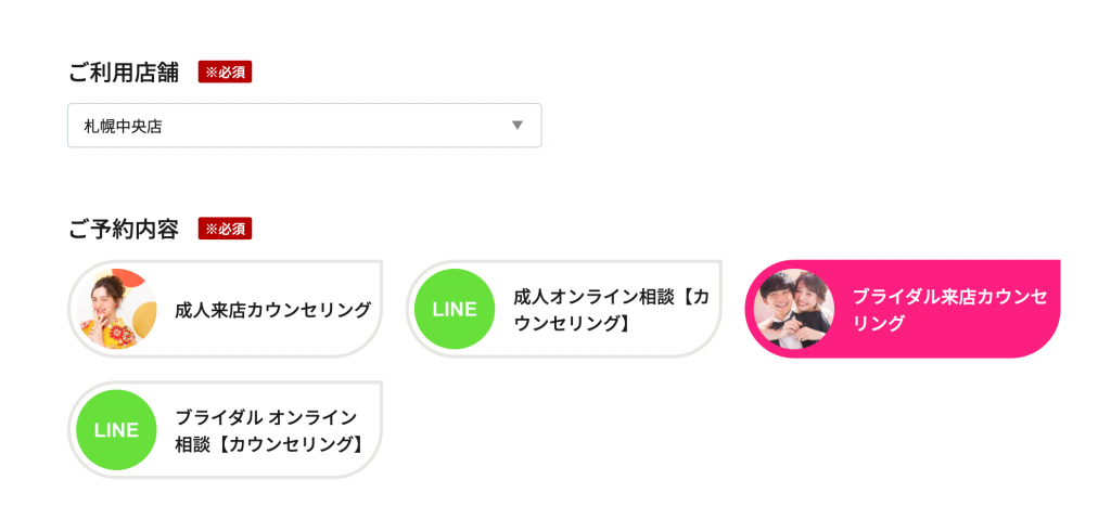 ブライダル来店カウンセリングorオンラインカウンセリングをタップ!